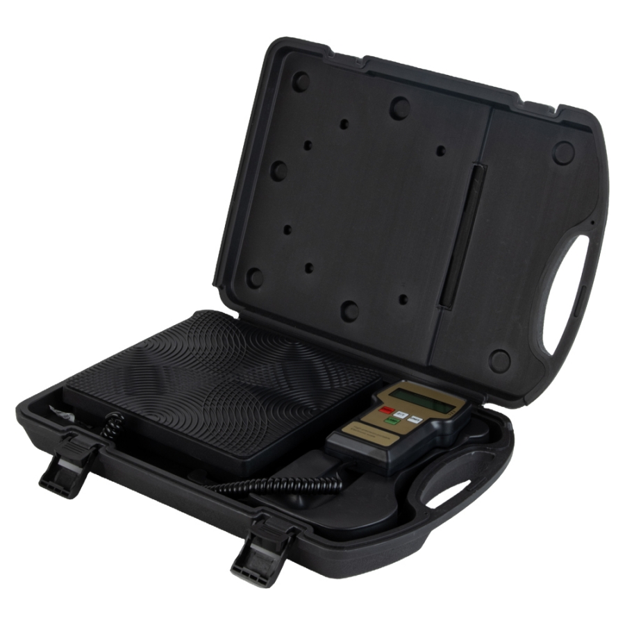 Электронные весы с пультом управления служат для точного дозирования хладагента без ошибок;