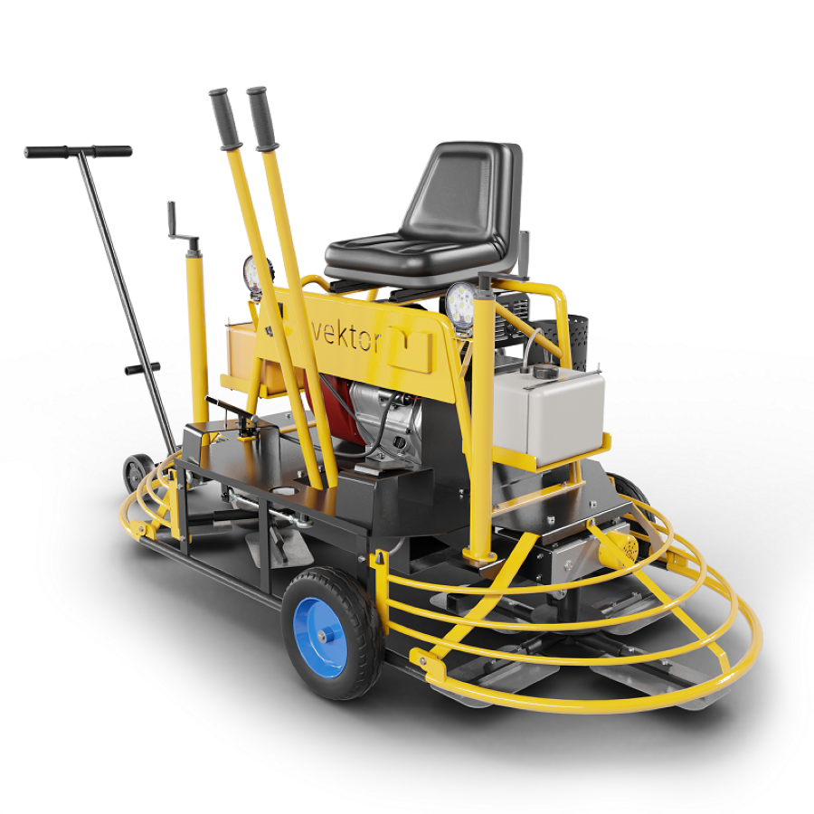 Двухроторная затирочная машина VEKTOR VTMG-1000A - регулируемая муфта сцепления обеспечивает необходимый диапазон крутящих моментов и скоростей для соответствия конкретным требованиям бетонного покрытия. Место для оператора позволяет снизить интенсивность труда и повысить эффективность работы. Благодаря наличию двух роторов, более тяжёлому весу и повышенному качеству уплотнения, производительность данной машины выше, чем затирочных машин с пешеходным управлением. Конструкция с низким центром тяжести обеспечивает устойчивую работу.