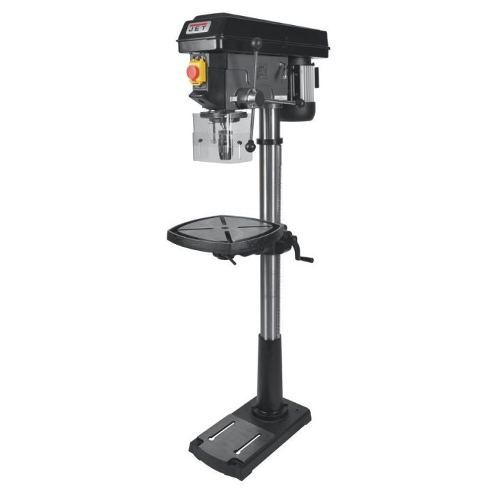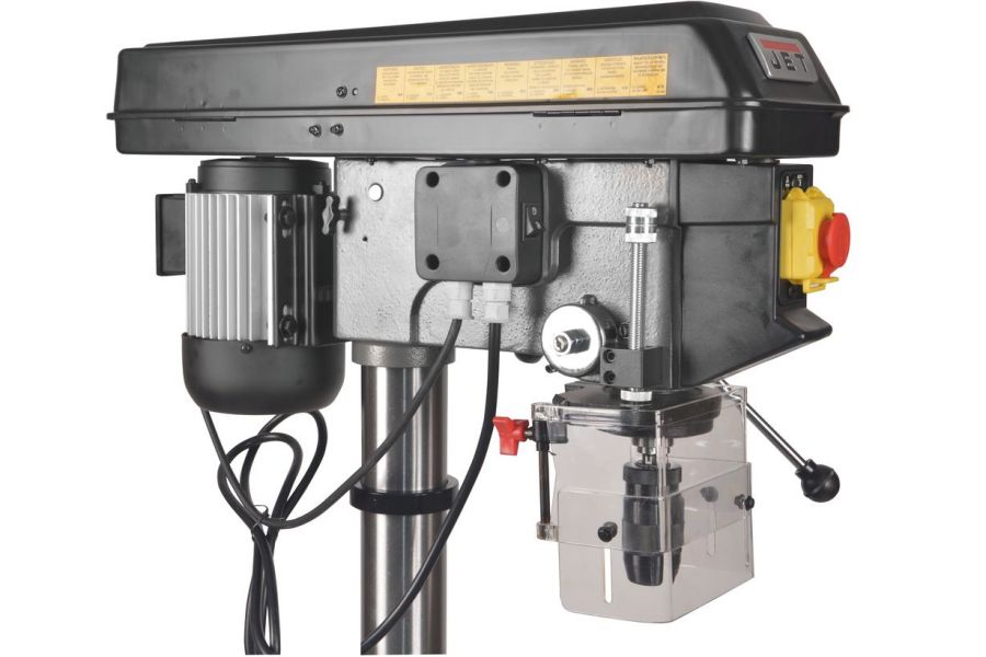 Jet JDP-17FM — профессиональный сверлильный станок для напольного размещения. Большой диапазон регулировки вертикального просвета за счёт подъёма/ опускания стола позволяет использовать его для работы с крупногабаритными заготовками, такими как готовые сборки изделий из металла или дерева.