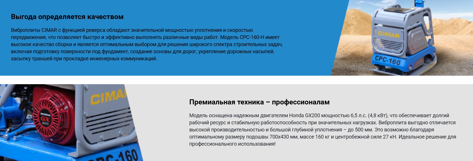 Виброплита реверсивная гидравлическая CIMAR CPC-160-H | |