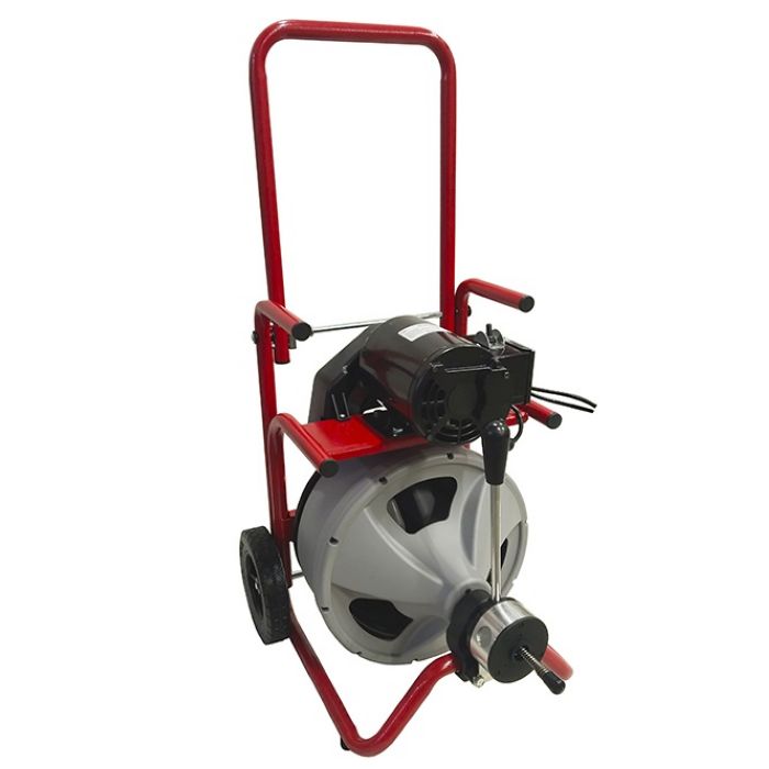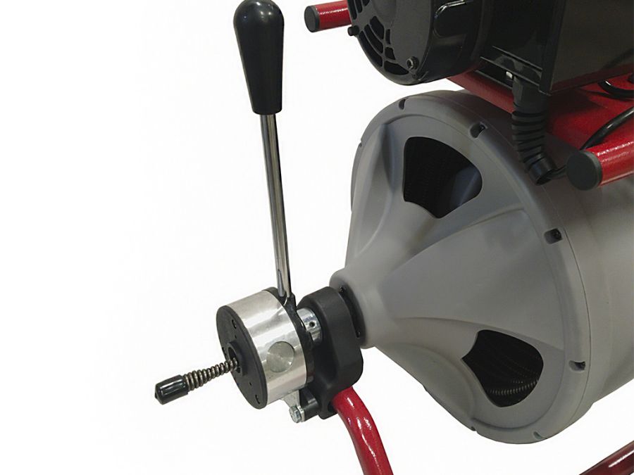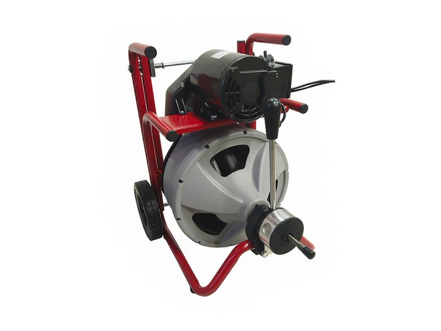 Электромеханическая машина для прочистки труб V-Clean 100 электро. Имеет прочистную спираль, усиленную стальным сердечником, что позволяет устранять засоры на длину до 25 м.