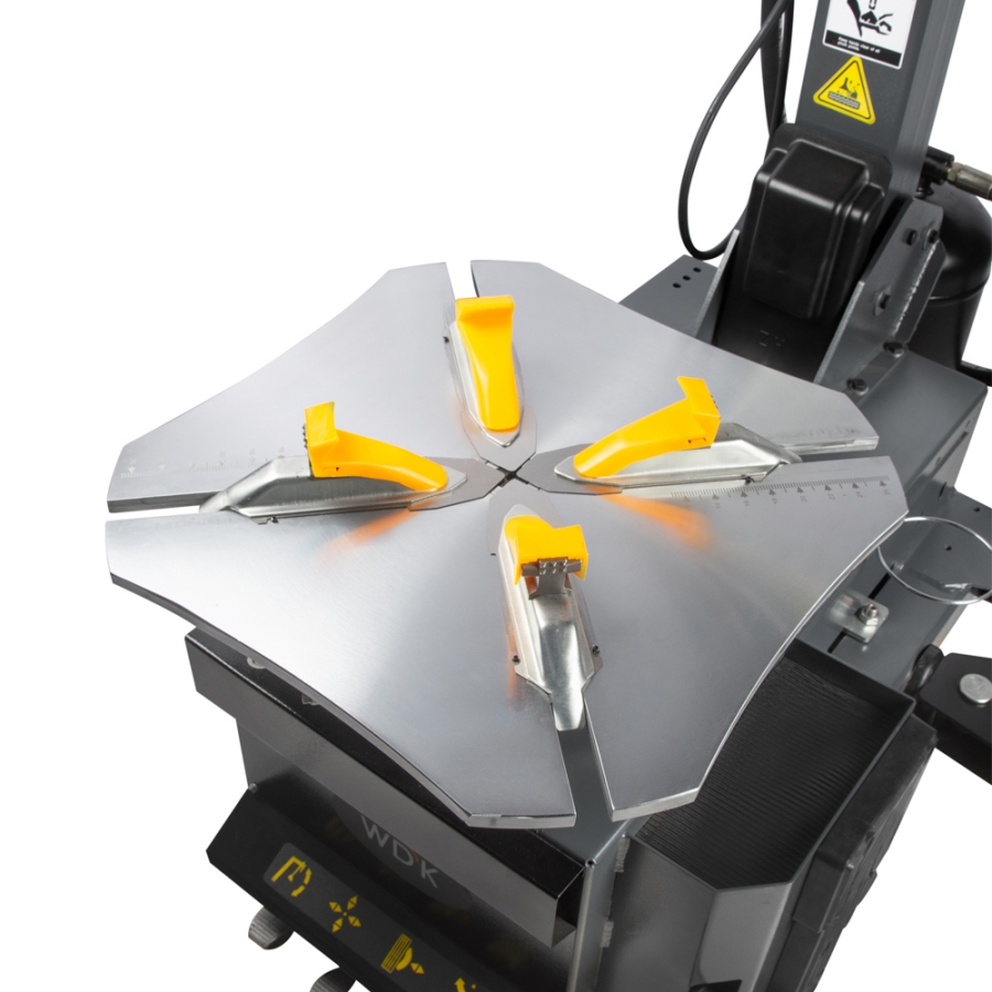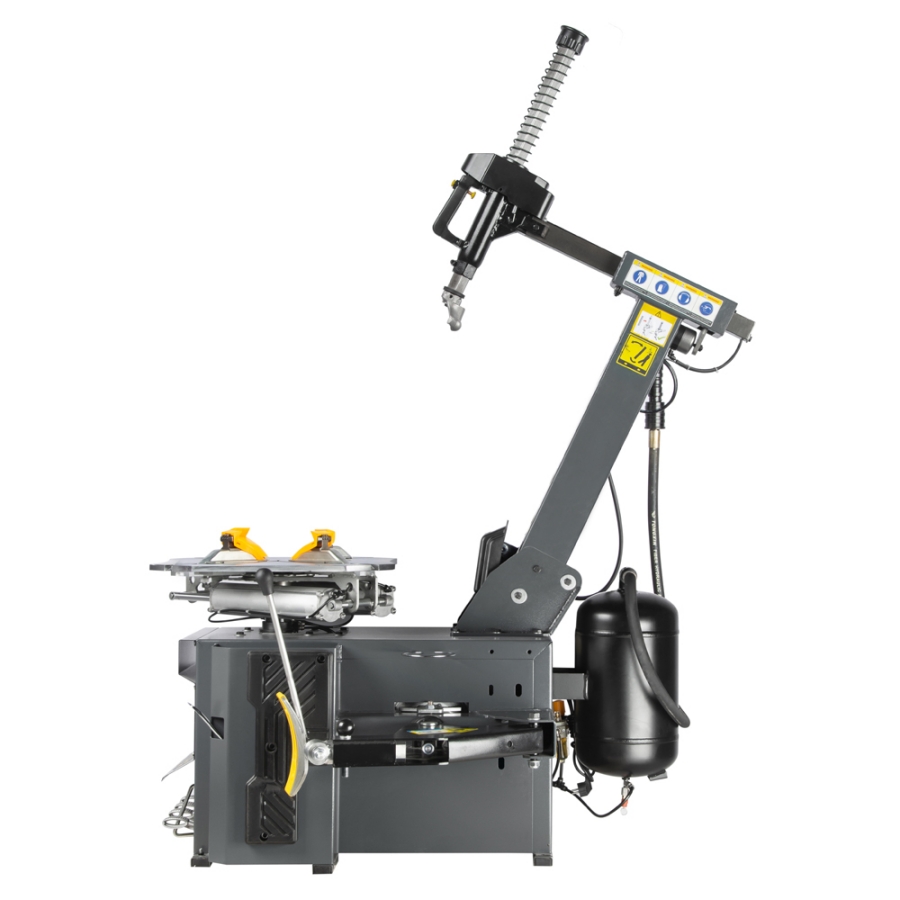 Односкоростной автоматический шиномонтажный станок WiederKraft WDK-709722, предназначенный для эффективного монтажа/демонтажа шин с колесными дисками диаметром от 12 до 23 дюйма при внешнем захвате и от 14 до 26 дюймов при внутреннем захвате. Оснащен увеличенным рабочим столом, отжимным цилиндром диаметром 200 мм с усилием в 3 тонны, устройством для отрыва кромки шин, а также пневматическим цилиндром двухстороннего действия. Станок подходит для дисков до 26 дюймов и идеален для работы с шинами Runflat. Конструкция шиномонтажного стенда WDK-709722 позволяет работать с покрышками c максимальным диаметром 1140 мм и шириной до 355 мм. Стабильное подключение в 220 вольт гарантирует надежную работу на протяжении всего рабочего процесса. Сдвижные пластины, изготовленные из высококачественной стали, защищают поверхность рабочего стола от износа. Зажимные кулачки станка оснащены пластиковыми накладками, защищающими диск от возможных повреждений. Двухсоставная сварная конструкция колонны обеспечивает ее повышенную жесткость и прочность во время монтажа и демонтажа больших шин, а также при работе с низкопрофильными шинами. При необходимости к станку можно присоединить устройство «третья рука» WDK-76RH — очень полезный устройство, если вы работаете с низкопрофильными, широкими и жесткими, дефектными шинами (позволяет дополнительно поддерживать колесо и заправлять лапку). WiederKraft WDK-709722 — надежный и профессиональный станок, который сделает процесс снятия или установки шин шин быстрым, удобным и эффективным.