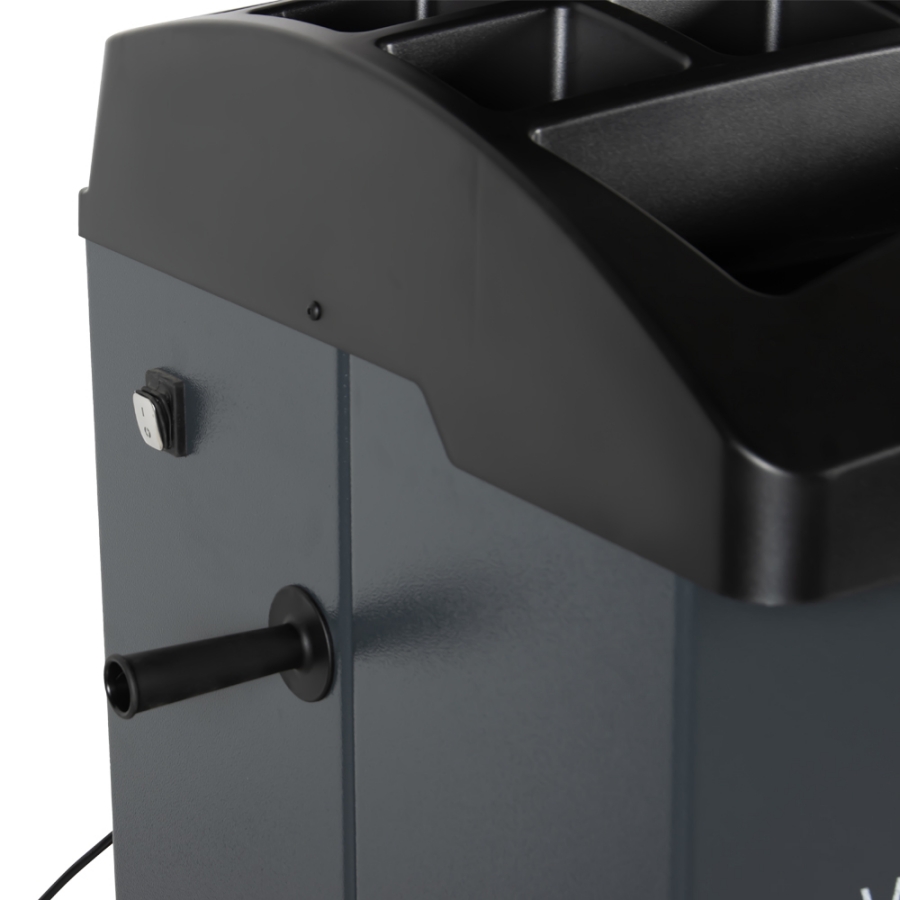 - Возможность запуска процедуры измерения дисбаланса как опусканием защитного кожуха, так и нажатием кнопки;