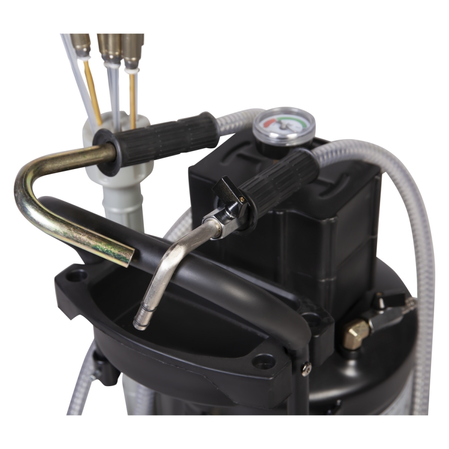 Мобильная установка для сбора отработанного масла. Возможен слив в подъемную ванну или откачка через отверстие для щупа.