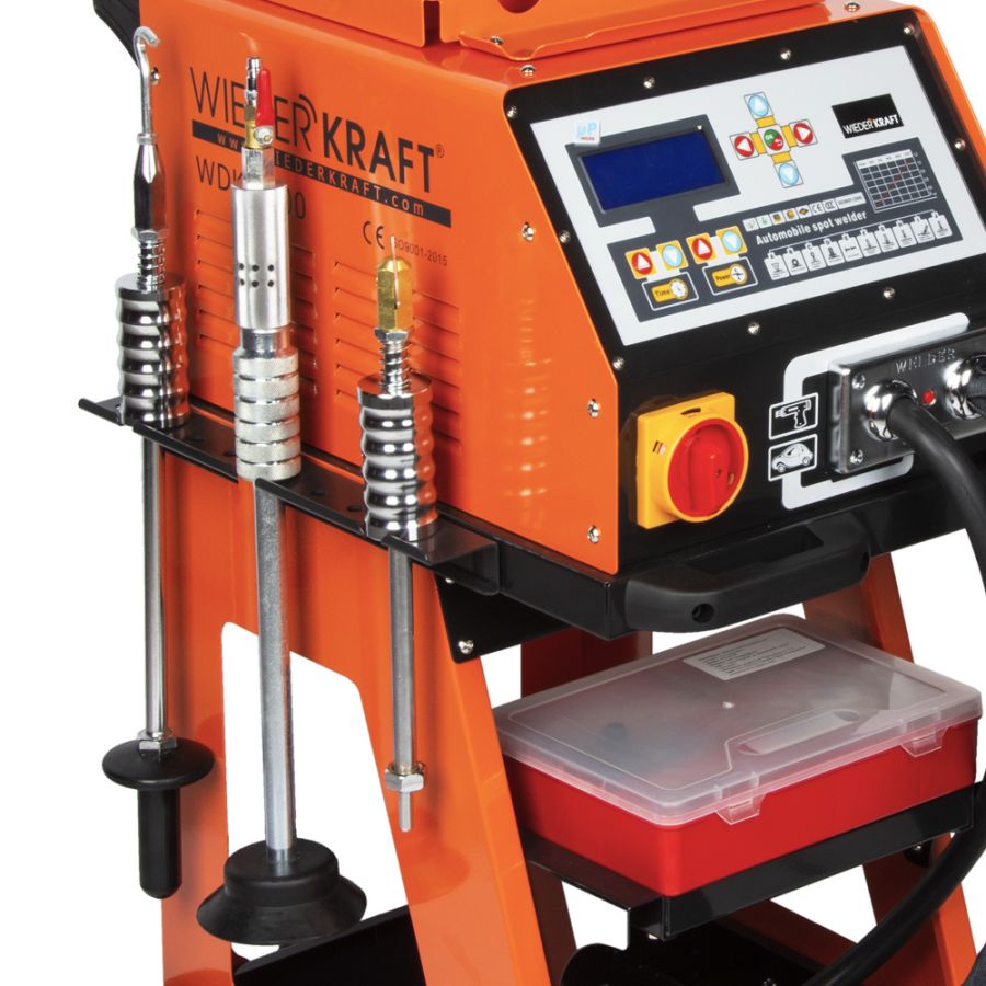 Профессиональный аппарат WiederKraft WDK-9000 для выполнения кузовных работ по выравниванию металлических поверхностей и односторонней точечной сварки (максимальный ток 5800 А). Интуитивно понятный LCD-дисплей и кнопочная панель обеспечивают удобное управление всеми параметрами сварки. Плавная регулировка силы тока обеспечивает высокую точность настройки. Благодаря наличию специальной функции WDK-9000 автоматически переходит в режим охлаждения. Модель оборудуется транспортировочной тележкой с отсеками для хранения сварочных принадлежностей, а также эргономичной ручкой и колесами для легкой транспортировки устройства. Аппарат подключается к трехфазной сети переменного тока 380 В. Держатель сварочного пистолета, закрепленный на корпусе аппарата точечной сварки, делает работу еще более удобной. Комплект аксессуаров и инструментов, входящих в поставку, позволяет выполнять самый широкий спектр работ по рихтовке поверхностей.
