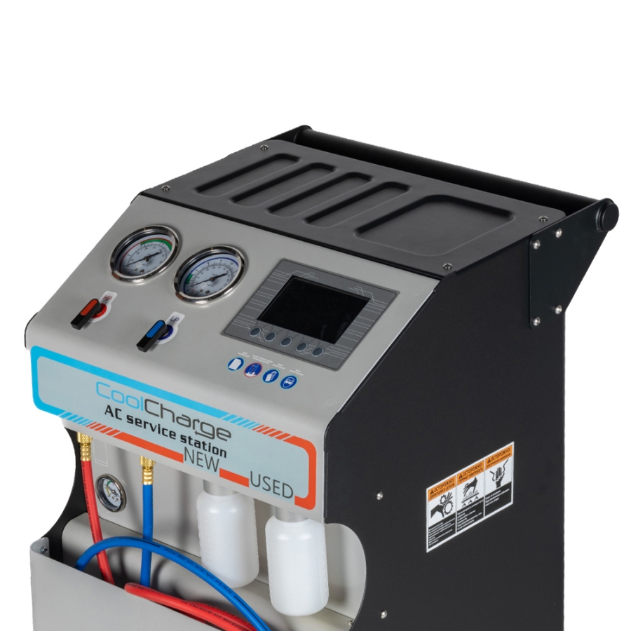 Полуавтоматическое управление: интуитивно понятный интерфейс с ЖК-дисплеем, автоматическое определение давления и количества хладагента, а также возможность ручной корректировки параметров (время вакуумирования, объем заправки);