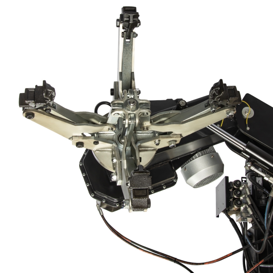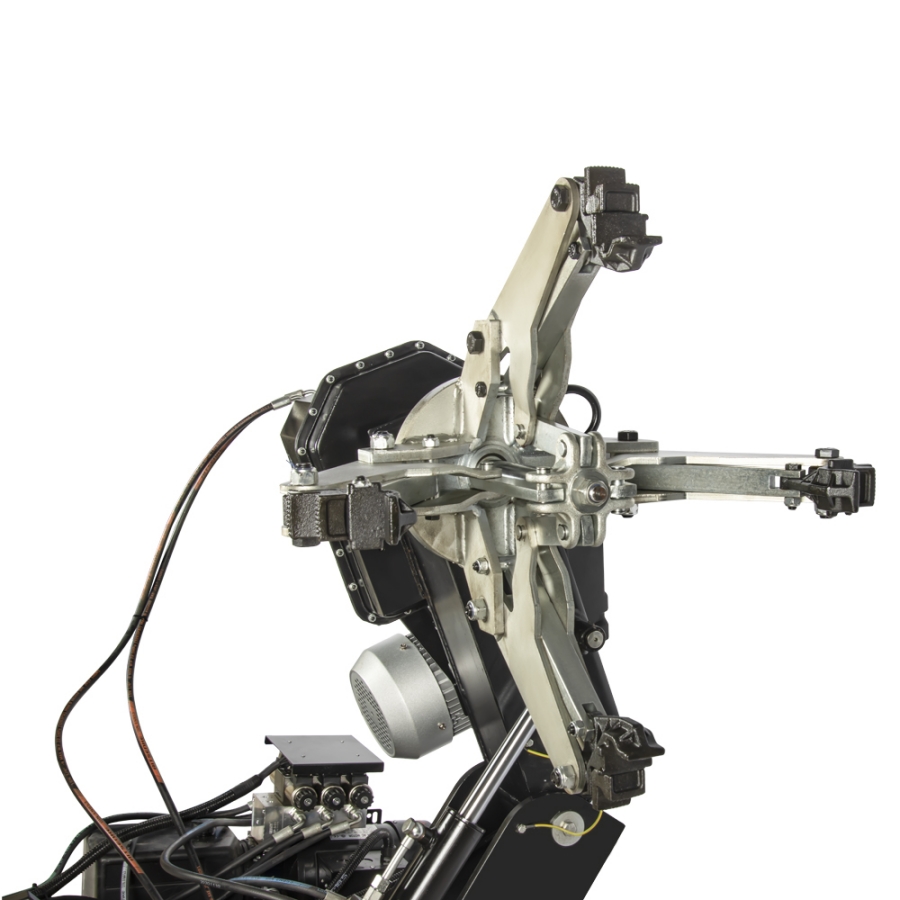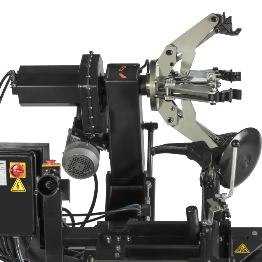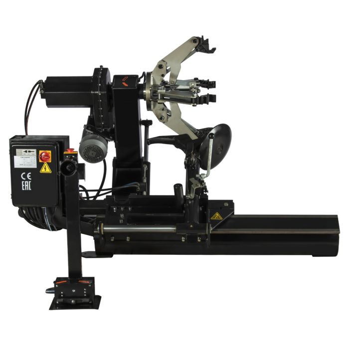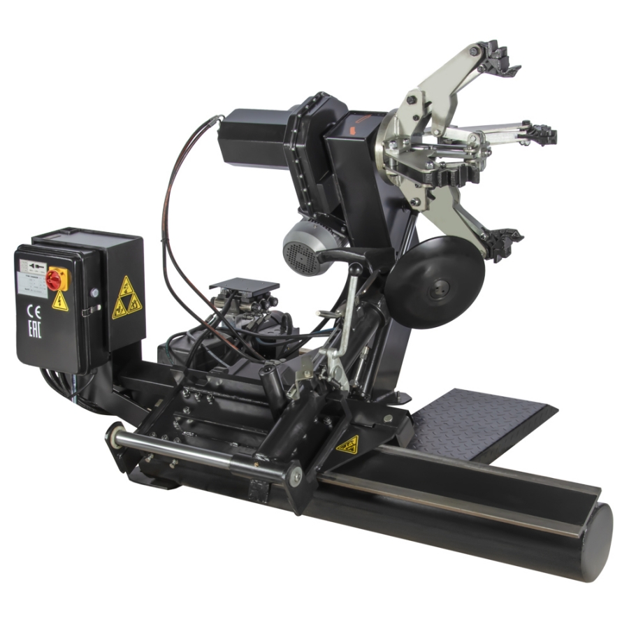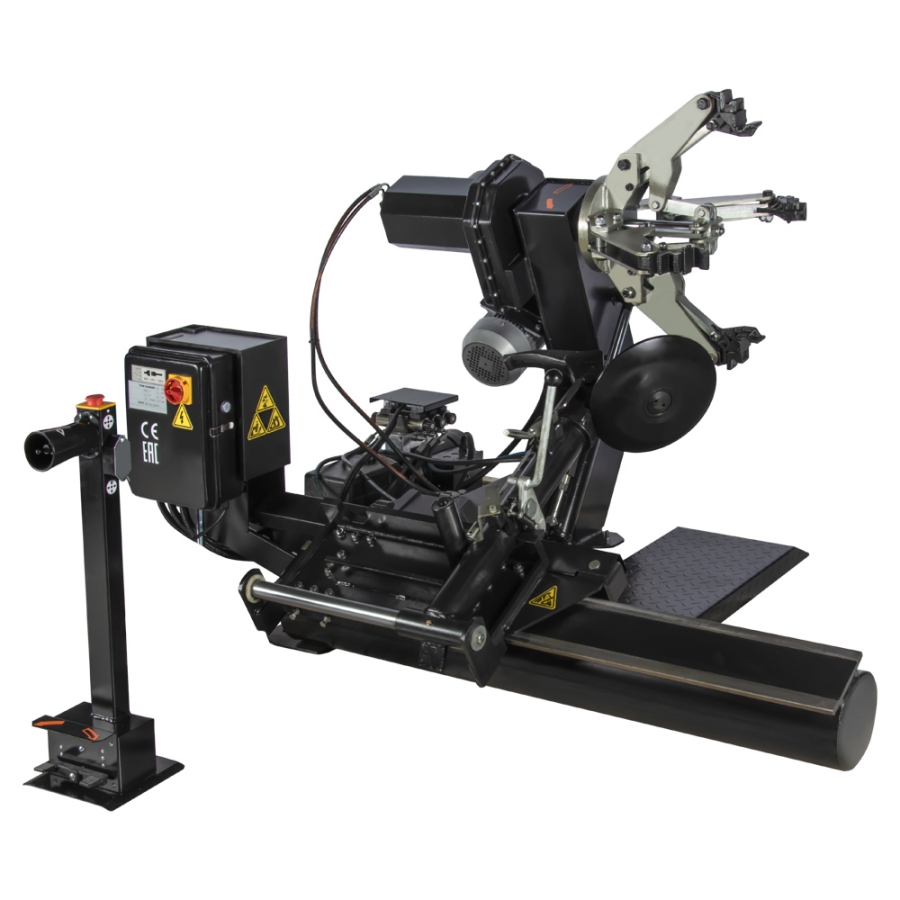 Возможность одновременного движения зажимного устройства и каретки с монтажно-демонтажным инструментам увеличивает скорость обслуживания крупногабаритных шин, повышая продуктивность рабочего процесса;